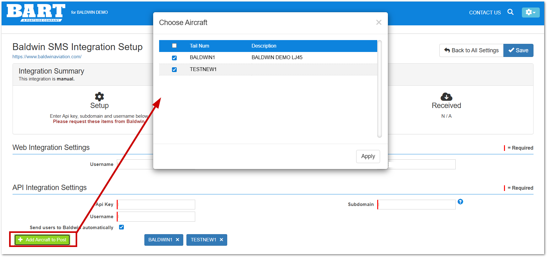 The enhances integration with Baldwin allows users and crew to seamlessly access their Baldwin SMS from inside BART.