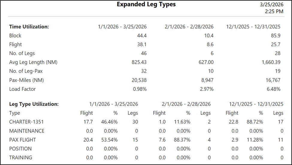Release Notes – Version 25.6.0 ✨ Enhancements Flight Logs & Reports Operation Summary Report Added a fourth date range option to support quarterly reporting. Report Builder – Legs-Based Reports New fields for Pax Charges are now available. Flight Log ...