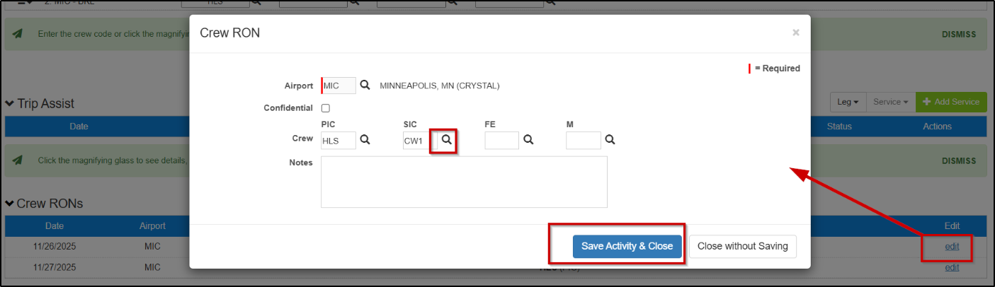 Editing RONs within a scheduled trip now works correctly when using the magnifying glass or Save button.